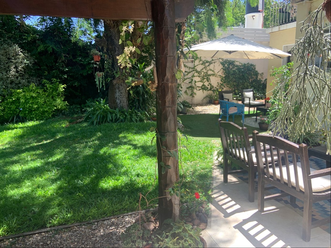 La casa cuenta con jardín al frente con reja perimetral, así como un acogedor y disfrutable fondo muy bien enjardinado.